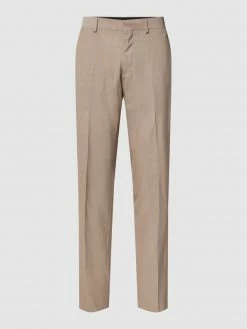 Die Anzughose von Mos Mosh ist aus Baumwolle, recyceltem Polyamid und Elasthan gefertigt. Sie kommt in gerader Passform mit Reißverschluss, französischen Eingrifftaschen und Bügelfalten.
