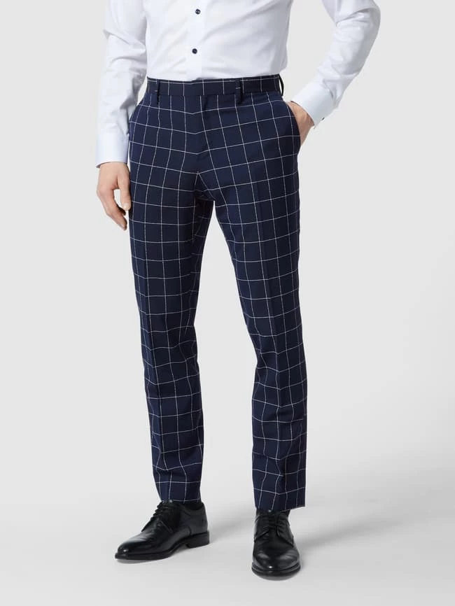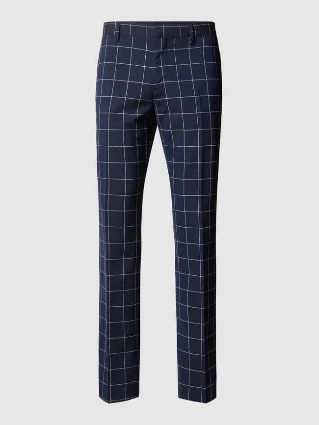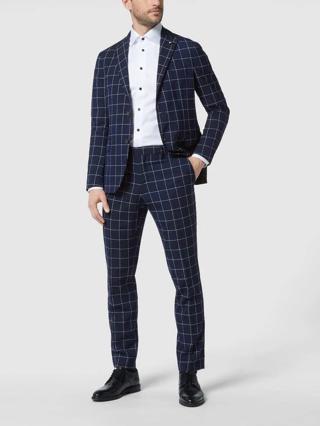 Die Anzughose von Tommy Hilfiger ist aus einer Materialmischung mit Woll- und Stretch-Anteil gefertigt und im Slim Fit gehalten. Sie kommt mit Gitterkaro, Bügelfalten und französischen Eingrifftaschen.